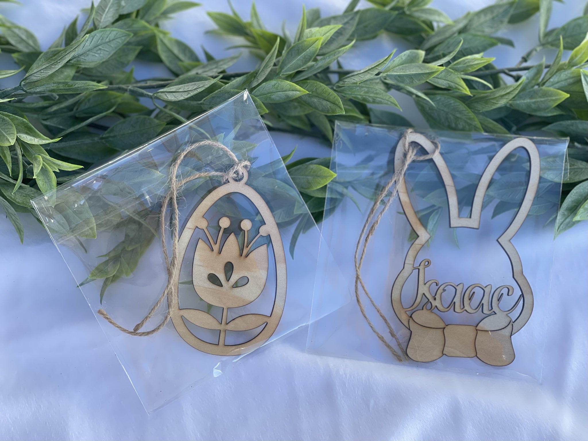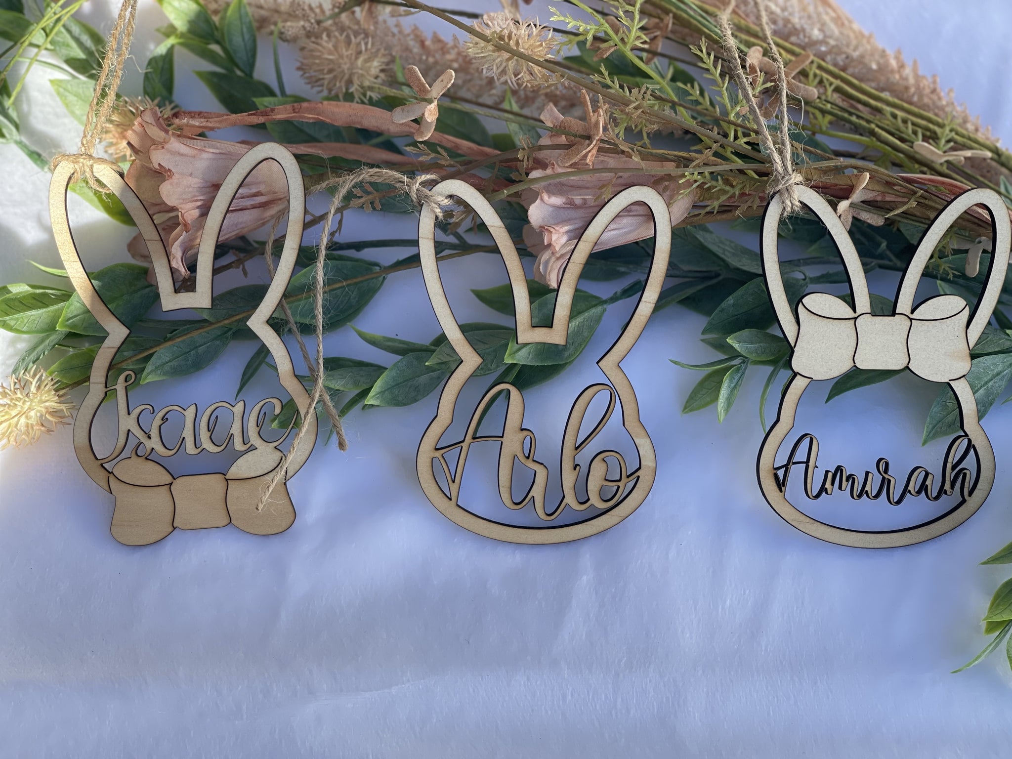 Add that personalised touch with a range of different styled gift tags to stand out from the rest. These hollow bunny tags come with a name and font of your choice, also packaged with fine dute for hanging. Please let us know which font you would like at check out, or simply leave it to us.